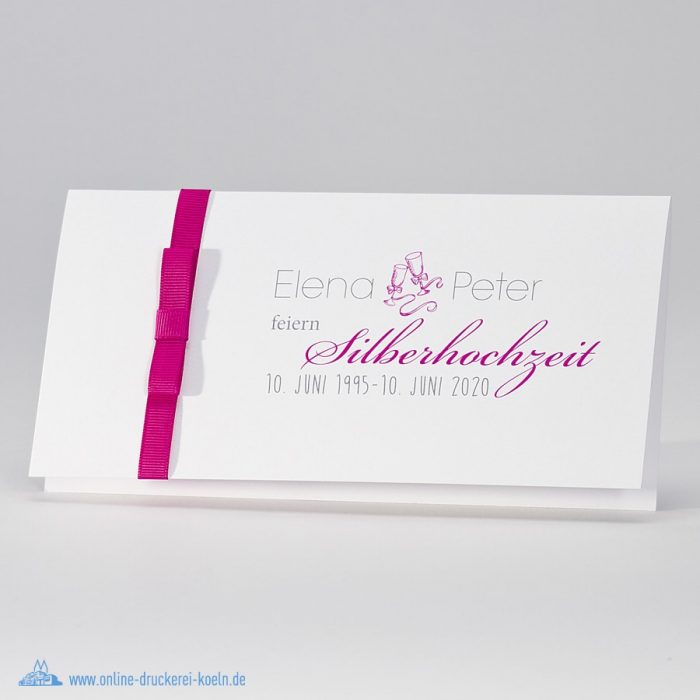- Details: Fuchsia Bändchen und integrierte Einladungskarte