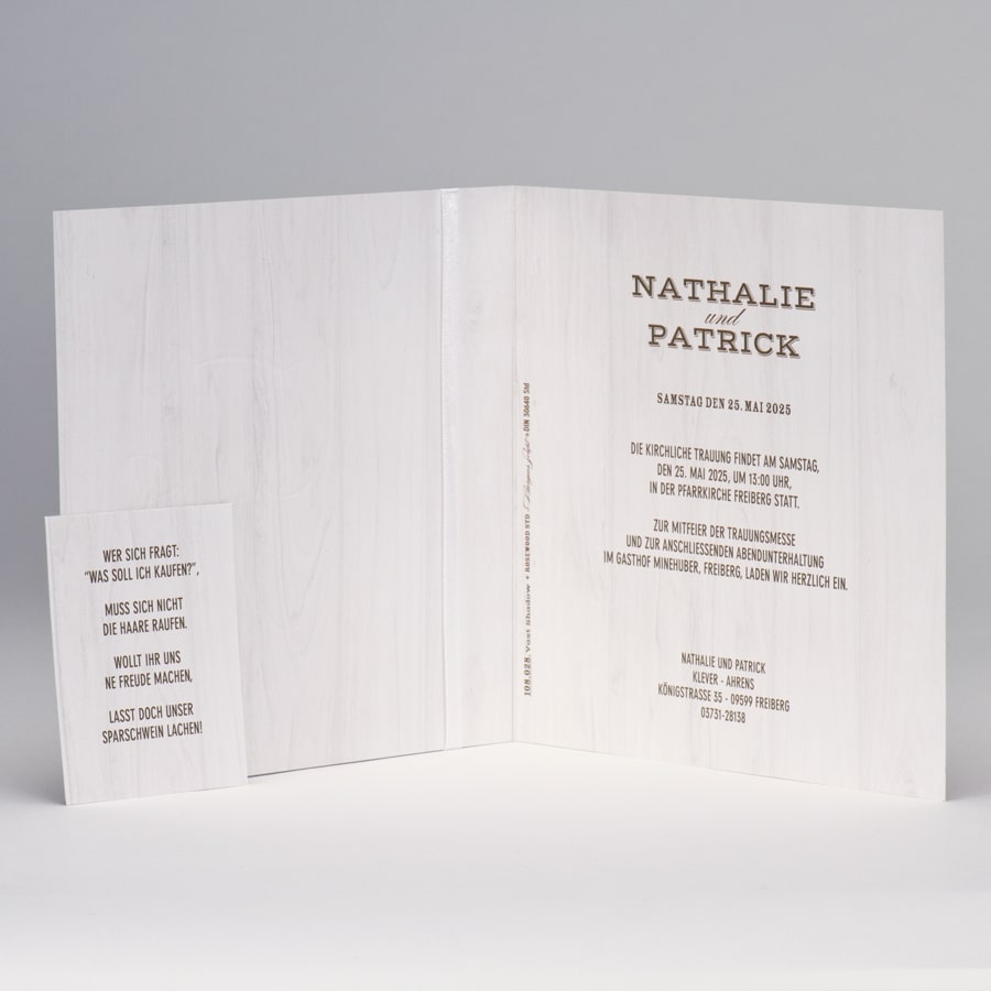Hochzeitskarte im Holzlook mit Spitzenbordüre